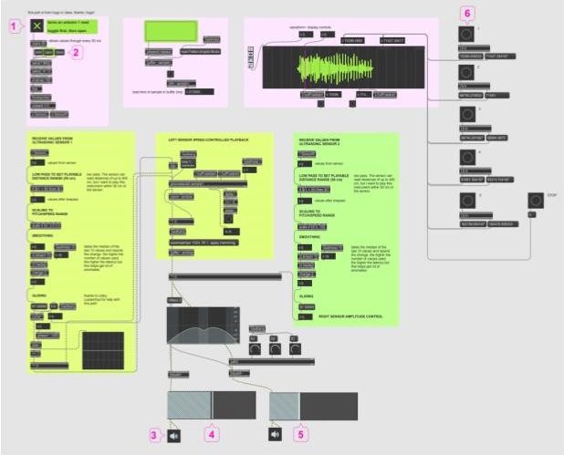 Another valuable quality of the Tablewaver is its versatility. If I want to customize the playing range to fit someone else’s height, I can do that in the Max patch without taking any of the hardware apart. I can easily swap out the audio file, giving myself an entirely new sonic palette. And I can quickly change playback speed, direction, and volume ranges.